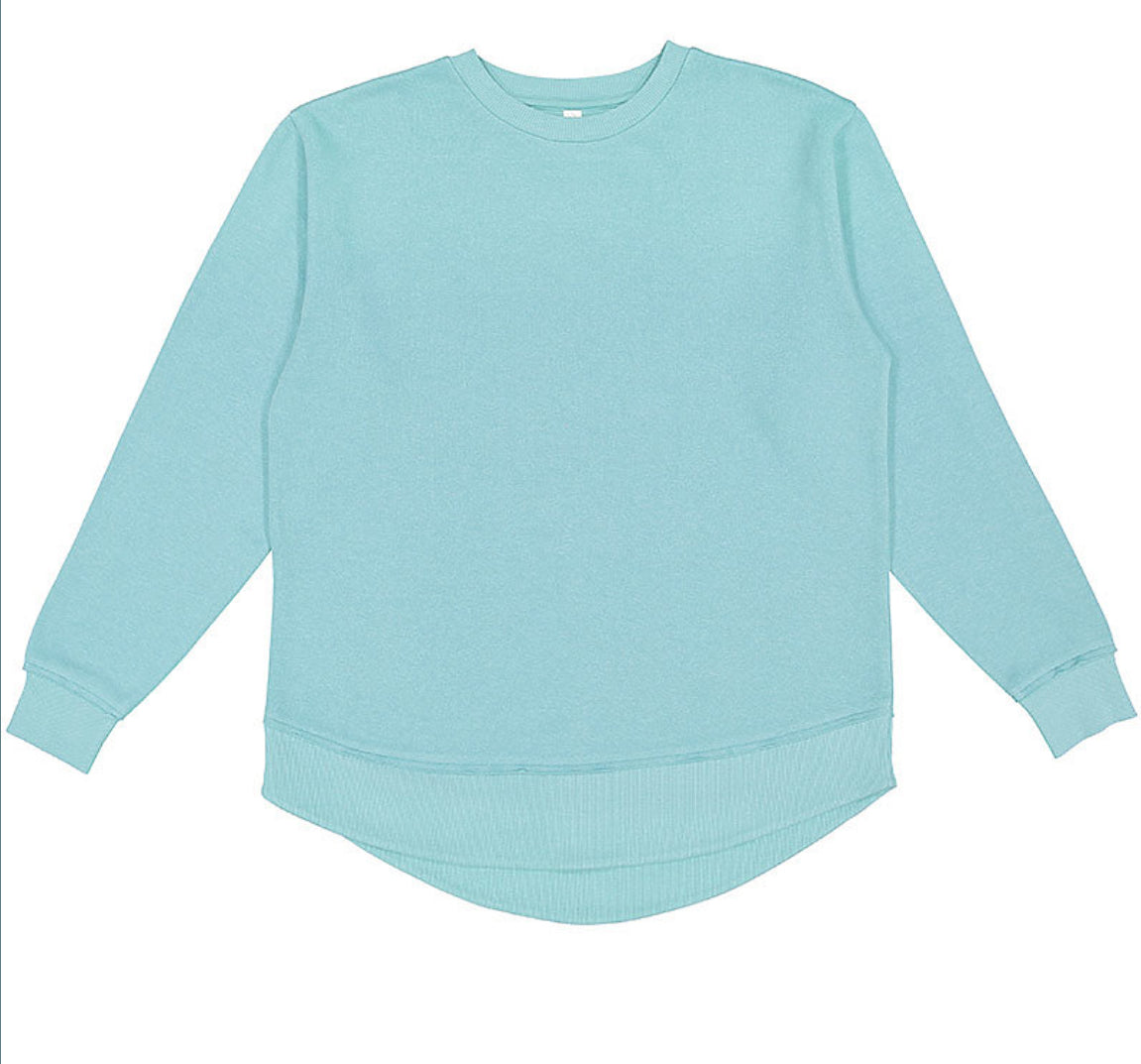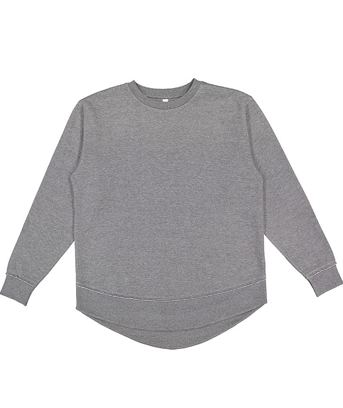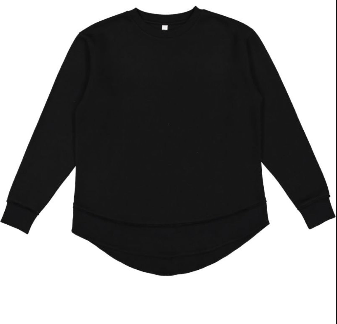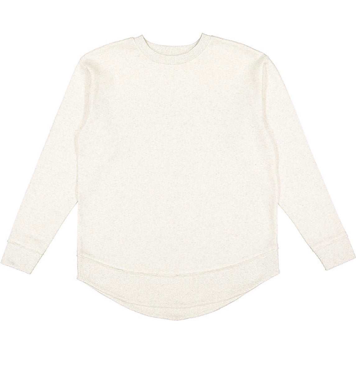 Features: Ribbed collar • Jersey back neck tape • Back locker patch • Drop shoulder construction • Ribbed cuffs and bottom band • Raw edge seam at sleeve cuffs and bottom band • Longer length silhouette with drop tail curved bottom hem • Side seam construction • EasyTear™ label.